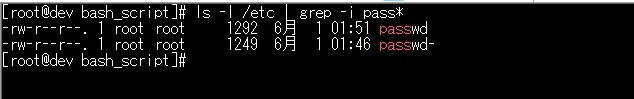 上記の場合、ls -l コマンドで /etcディレクトリのファイル一覧の出力を | (パイプ)で grep コマンドに渡して、
